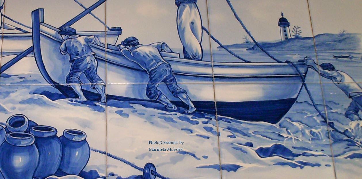 " Pescadores chegando do mar " Pormenor de painel em azulejos... (Pintado por Marinela Moreira) |