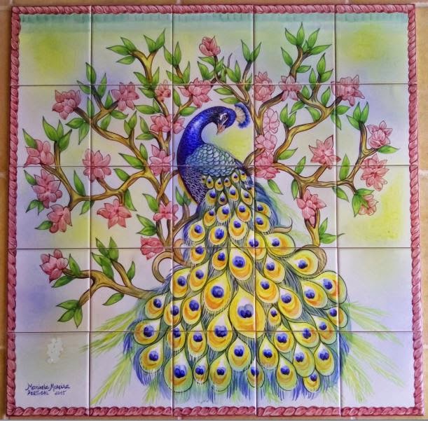 | Painel em azulejos pintado à mão..."Pavão" (Por Marinela Moreira) |